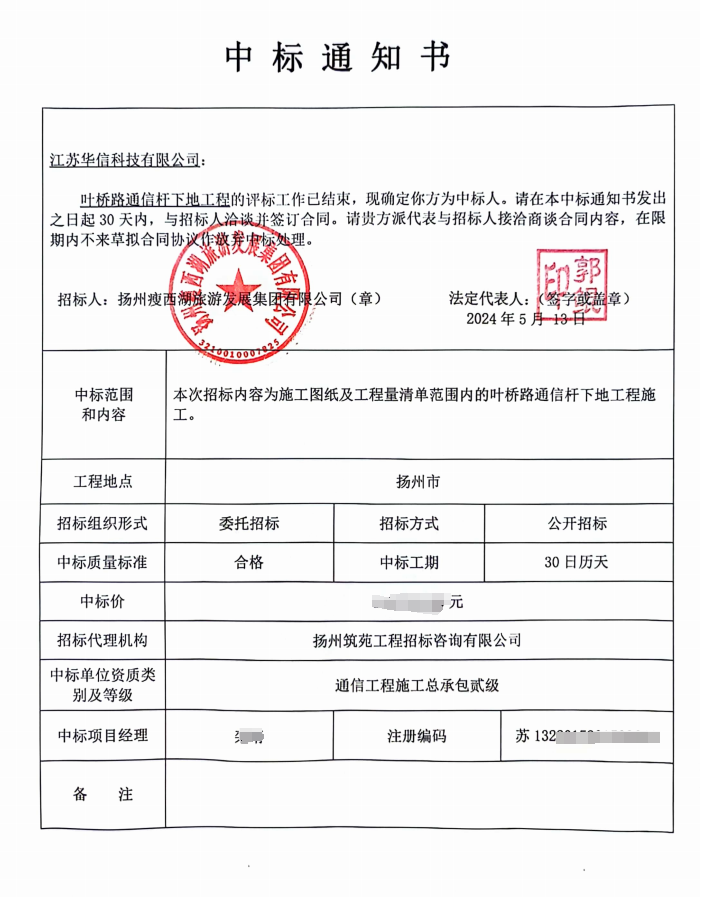 公司成功續(xù)約2024-2029揚(yáng)州移動(dòng)第三方基站資源綜合服務(wù)項(xiàng)目
